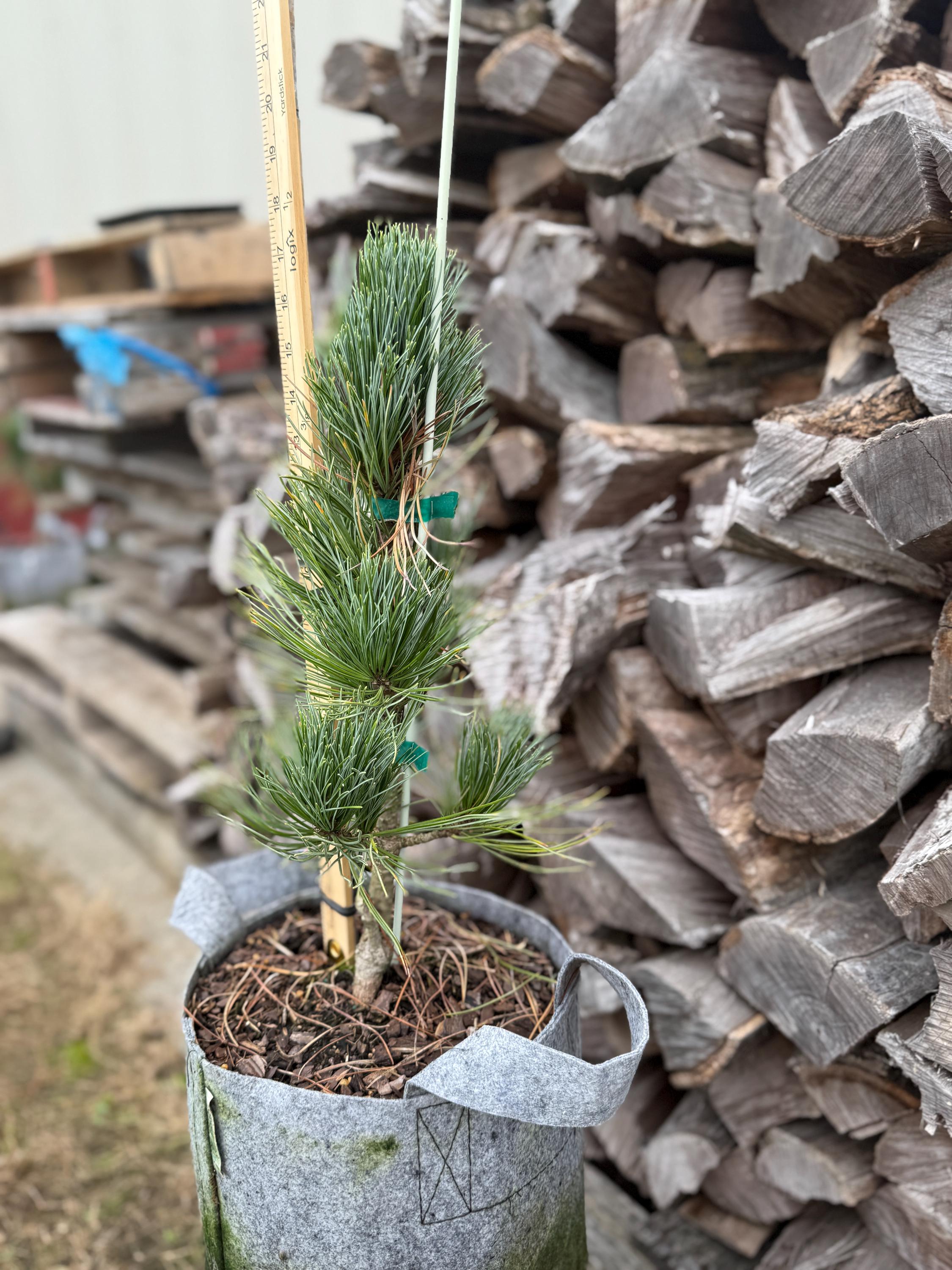 A rare and elegant evergreen with a naturally slender, columnar form, perfect for smaller landscapes or as a vertical accent. Its dense, soft green needles have a subtle bluish cast, bringing year-round texture and beauty. Unlike many pines, this cultivar stays narrow, making it ideal where space is limited.